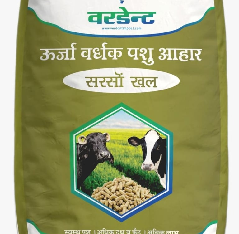 Verdant Sarso Khal is a mustard-based cattle feed that boosts energy, digestion, and milk yield.Available in a 50kg moisture-proof pack.